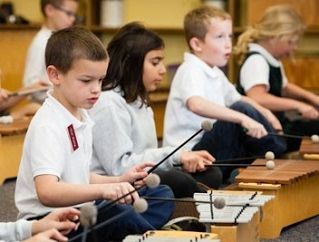 This music program at SHJS is taught with holding the ideals of the Orff-Schulwerk method, and the Feierabend philosophy. These combined ideals are that all people have the potential to become tune-ful, beat-ful, and art-ful, using imitation, exploration, improvisation, and composition. Students will be given opportunities to sing together, dance together, and be moved by expressive music.